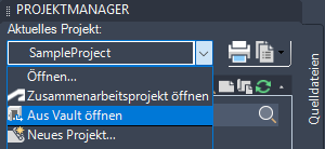 Wenn ein Vault-Projekt geöffnet wird, zeigt der Projektmanager einen Vault-Projekttyp