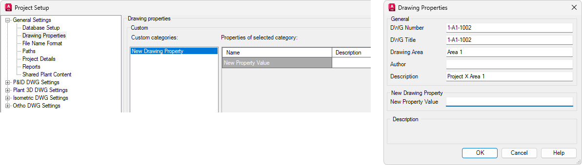 Wenn Sie ein Projekt konfiguriert haben, können Sie in der Projektkonfiguration Eigenschaften hinzufügen, die für jede Zeichnung angezeigt werden.