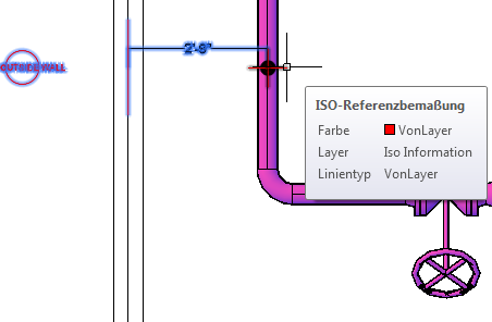 ISO-Referenzbemaßungen können Plant-Objekte, andere Objekte als Plant-Objekte (AutoCAD-Linie) oder auch kein Objekt (eine Position im Raum) referenzieren.