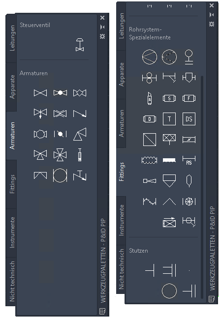 Einbaukomponenten wie Ventile und Reduzierstücke werden auf Rohrleitungen platziert.