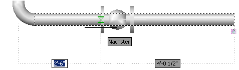 Fittings verfügen neben allen in einem Rohrsegment verfügbaren Griffen außerdem über einen Umkehrungs- und Drehungs-Griff. Mit diesen Griffen können Sie ein Fitting durch Umkehren und Drehen ausrichten. Weitere Informationen zu Griffen finden Sie unter Griffe.