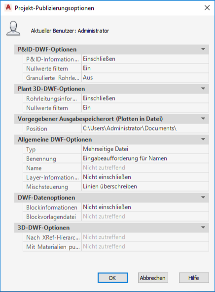 In diesem Abschnitt können Sie das Verhalten bei der DWF-Publizierung steuern.
