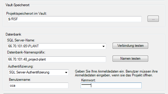 Beachten Sie, dass die Verwendung von Vault für ein Plant 3D-Projekt auch den Einsatz von SQL Server erfordert.