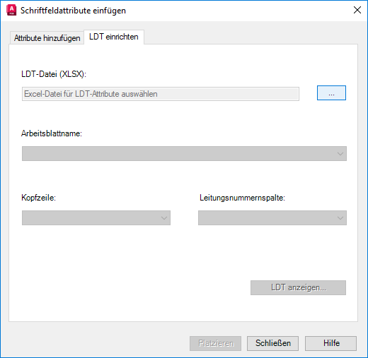 Zeigt den Dateinamen und den Dateipfad für eine LDT-Datei an. Geben Sie den Namen und Pfad der Microsoft Excel-Tabelle ein, die Sie verwenden möchten. Klicken Sie auf die Schaltfläche [...], um zu einer anderen Datei zu wechseln.