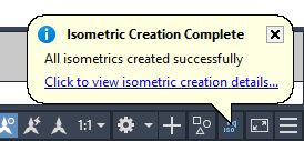 - Klicken Sie auf die Verknüpfung in der Sprechblase, um die Ergebnisse der isometrischen Erstellung anzuzeigen und die isometrische Zeichnung zu öffnen.