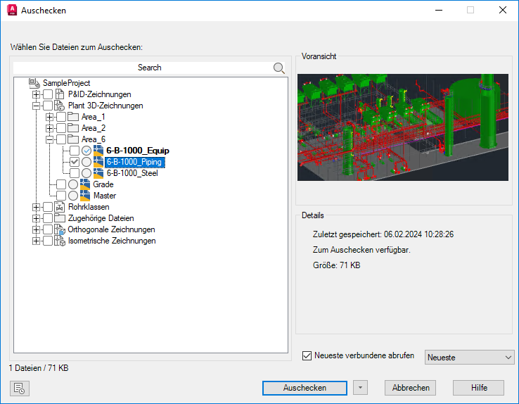 - Zeigt ein Voransichtsbild der ausgewählten Datei an, ohne dass die Zeichnung heruntergeladen werden muss.