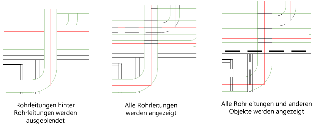 Alle Rohrleitungen und anderen Objekte hinter Rohren oder Objekten werden angezeigt.