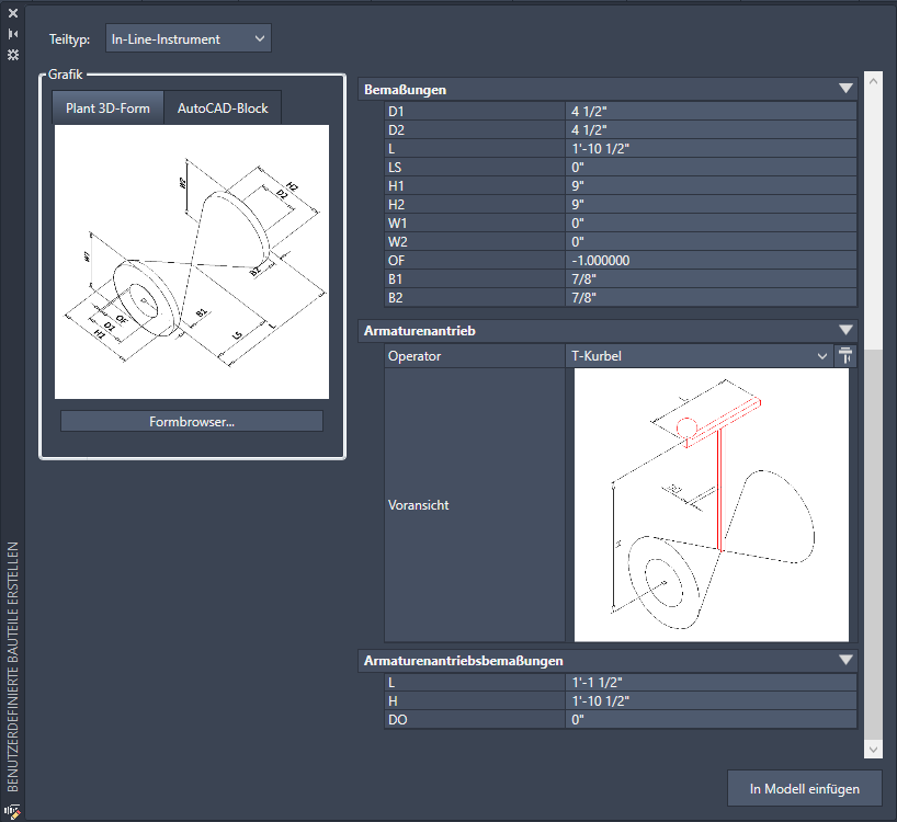 Zeigt das Dialogfeld Plant 3D - Formbrowser an.