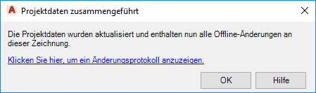 Dialogfeld Projektdaten zusammengeführt