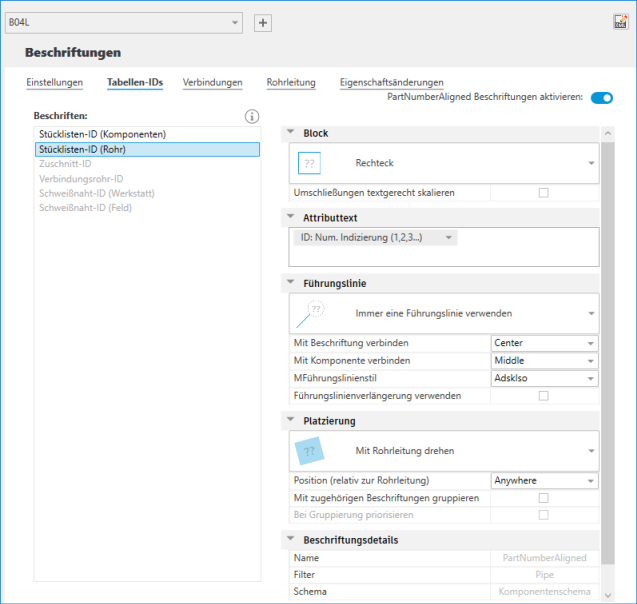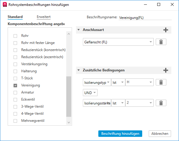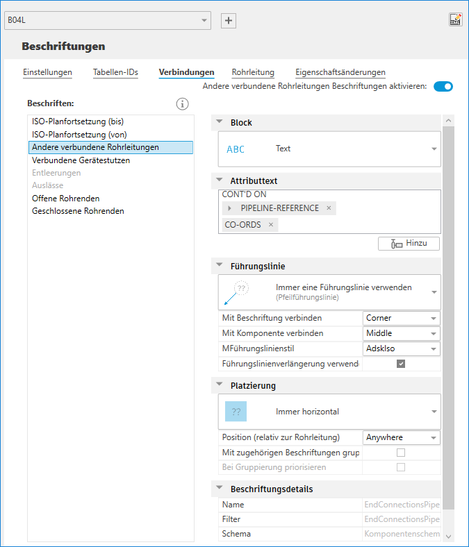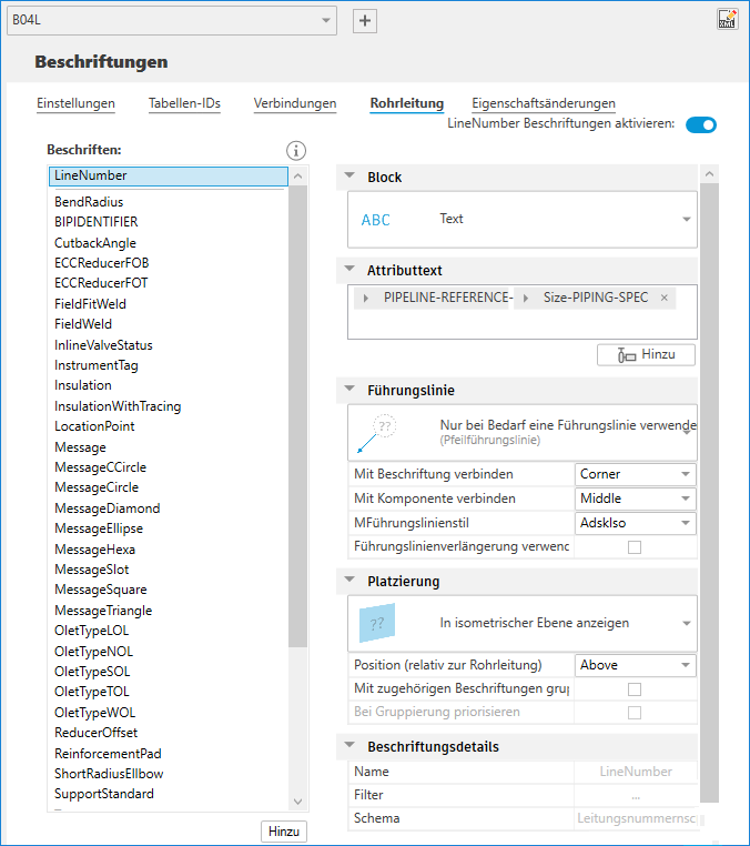 - Klicken Sie unten in der Liste Beschriften auf Hinzufügen, um eine neue Rohrleitungsbeschriftung hinzuzufügen.