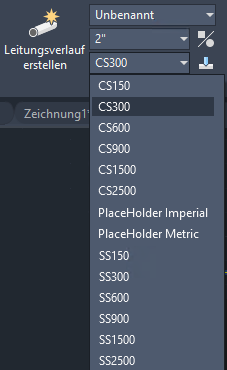 Klicken Sie in der Dropdown-Liste auf eine Rohrklasse (z. B. CS300).