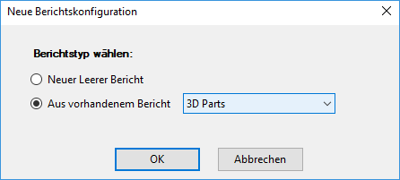 - Klicken Sie im Dialogfeld Neue Berichtskonfiguration auf Aus vorhandenem Bericht und wählen Sie die Konfiguration aus, die Sie ändern möchten. Klicken Sie auf OK.