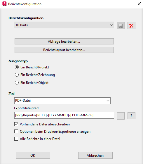 - Führen Sie im Dialogfeld Berichtskonfiguration die folgenden Schritte durch: