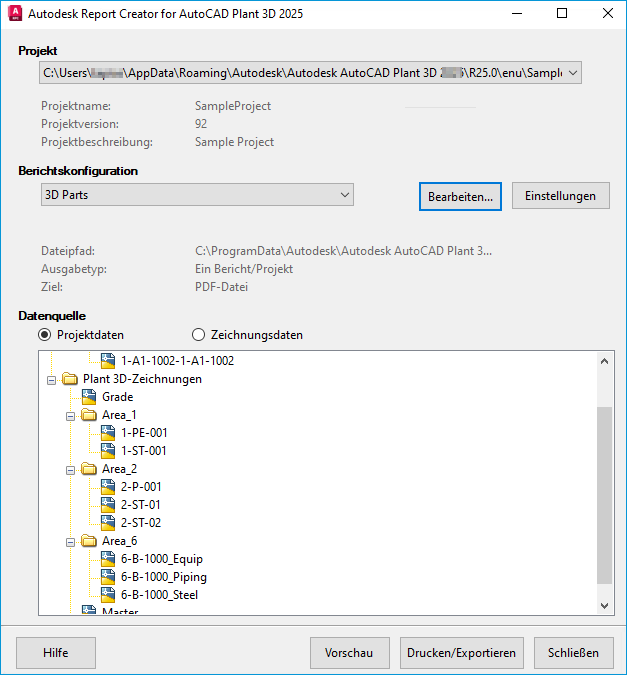 - Wählen Sie unter Projekt entweder ein Projekt aus der Dropdownliste aus oder klicken Sie auf Öffnen und navigieren Sie zum gewünschten Projekt.