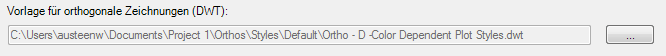 - Geben Sie im Fenster Pfade unter Orthogonale Vorlagendatei (DWT) den Pfad zum Speicherort der Vorlagendatei ein oder klicken Sie auf die Schaltfläche [...], um den Speicherort zu suchen. Vorgabemäßig befindet sich der Ordner hier: