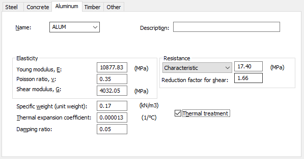 - Shear modulus - the shear modulus for the defined aluminum. This recognizes the influence of shear forces on structure deformation.