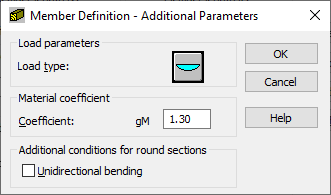 The lower part of the dialog defines additional conditions for round sections, i.e. unidirectional bending. If the option is selected, then during calculations of a member with round section subjected to bi-axial bending, the moments My and Mz are replaced with a resultant moment being their vector sum. The members are then subjected to unidirectional bending.