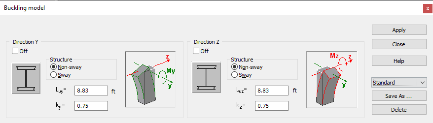 Loy, Loz - design length of a column resulting from an adopted buckling model and a structure type (Loy = ky * Ly, Loz = kz * Lz)