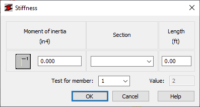 When the adjoining member number is selected, the buckling coefficient value is checked in the lower portion of the dialog, and the value of the buckling coefficient is displayed in the Member Test: Value field.