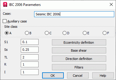 Parameters of a structure seismic analysis depend on a seismic code used during calculations of a structure influenced by seismic impact. Select seismic code IBC 2000 ("International Building Code 2000") or IBC 2006, issued in the USA in the New Case Definition dialog or click Parameters in the Analysis Type dialog.