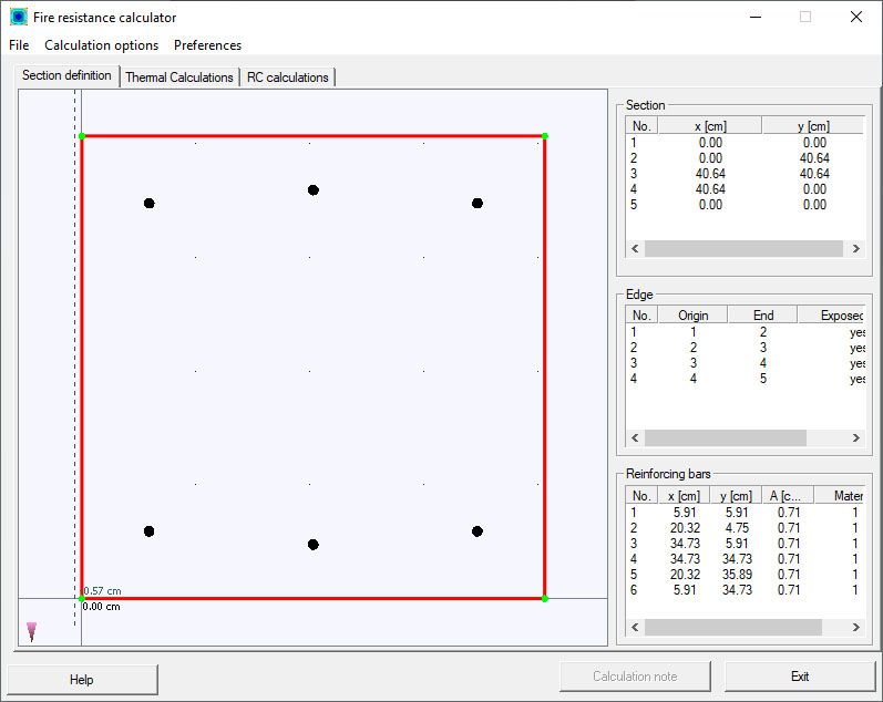 Note: In the current version of the calculator, exposed to fire is the only type of the edge of the column cross section. All edges of a section are exposed to fire.