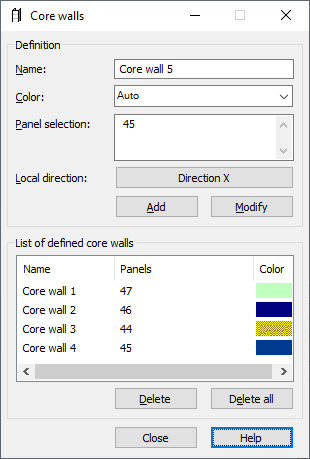 The defined core wall will be added to the list of defined core walls which is located in the bottom part of the dialog.