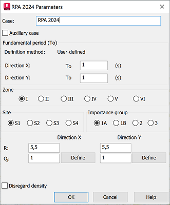 To complete the seismic analysis according to the rules given in a code, define the following parameters: