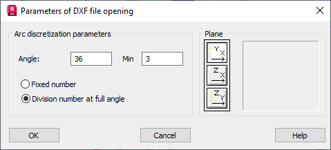 After the option is selected, the Parameters of DXF file opening dialog displays.