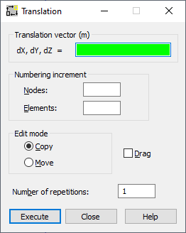If you manually defined the translation vector in the dialog, clicking Execute completes the action.