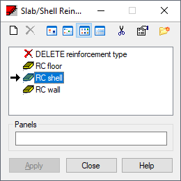 If the active reinforcement type list is empty or a new reinforcement type is to be added to the active list, click on new reinforcement type parameters.