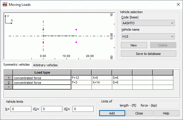 The dialog lets you select a vehicle to add to the active list of vehicles in the Moving Loads dialog. There are 2 vehicle types available:
