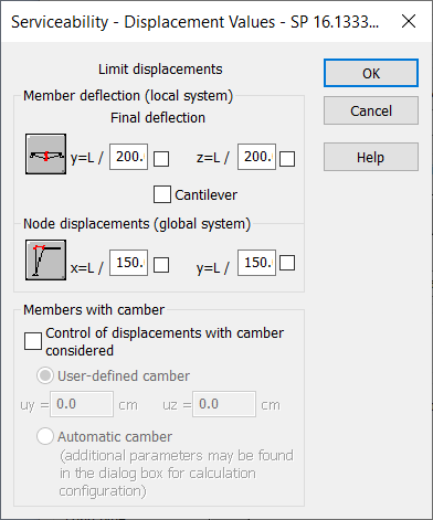 Use this dialog to define additional parameters determining the limit displacement values.