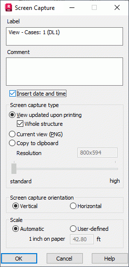 Select the Screen Captures tab in the Printout composition dialog to select options for screen capture printouts.