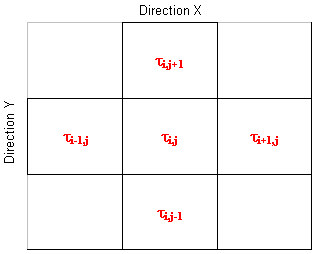 When it is required to know the current temperature to determine coefficients not described by equations, the approximation from previous time steps is applied (forward difference).