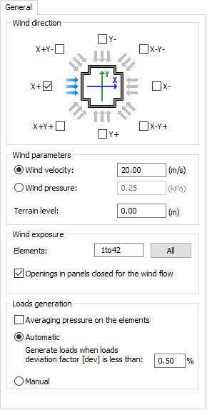 - Specify which elements are exposed to the wind, and indicate if the openings in the panels must be considered as closed or not.