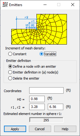 Yoy can define emitters graphically (by indicating the emitter position with the cursor after defining the H0 parameter) or using the keyboard (after defining the emitter parameters, click Apply).