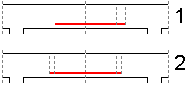 Keep location of the bar center - if you activate this option, the length of the longitudinal bar during the length duration will be increased symmetrically with respect to the bar center (see drawing below: 1 - the option is off, 2 - the option is on).