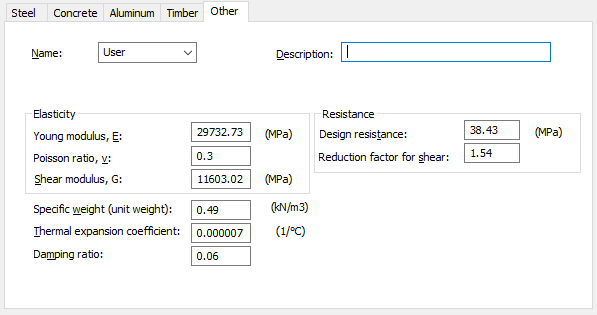 - Damping ratio - specifies the damping ratio for the user-defined material. This ratio is used for the dynamic analysis of structures.