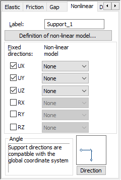 When the Nonlinear tab is selected from the Support Definition dialog, the following dialog displays.