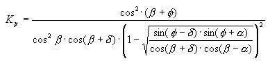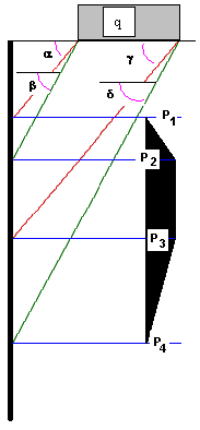 SETRA (France): α=Φ, β=45+Φ/2 as well as P1= K q and P2 =K q