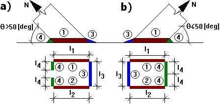 For a connection in which there is a distance between bars, it is assumed that longitudinal segments of welds (with respect to the chord axis) are fully effective, while effectiveness of transversal segments differs. Segment 3 (internal weld) of the inclined bar joint participates in the transfer of a force from one bar onto the neighboring segment. Segment 4 (external weld) is excluded from participation if there are large inclination angles.