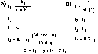 The procedure when calculating stresses on individual segments of welds is identical to that for a connection with a distance between bars.