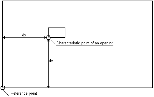 Specify the local coordinates of a characteristic point of the opening with respect to the reference point. You can block the offset options dx and dy by selecting block dx and/or block dy.