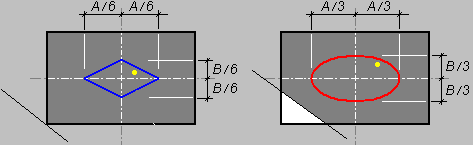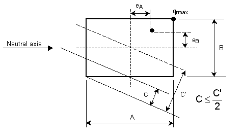 The generalized core has been introduced due to the limitation of allowable gap under the foundation when uplift of the footing base occurs 2.3 a. The code allows for the gap between the ground and the foundation base. The range of which may not be greater than half of the distance C', between the straight line that extends parallel to the neutral axis and passes through the centroid of the whole base, and the outermost point of the base which lies opposite to the point at which the maximum stress value q rmax occurs. Therefore, the allowable, relative value of a gap for core II equals 0.5 and results from the C/C' ratio. For a simple case of eB = 0, C = A/4, a C' = A/2.