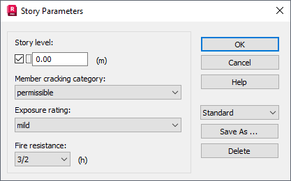 The Story Parameters dialog allows you to define parameters of a story according to the French (BAEL) code.