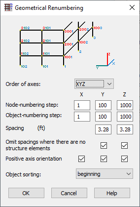 To perform geometrical renumbering of nodes or objects in a structure: