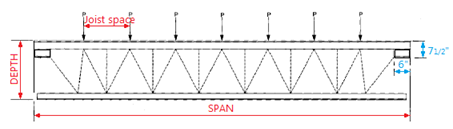 A joist girder is a simple span, supporting equally spaced concentrated loads from open-web steel joists. These concentrated loads are considered to act at the panel points of the joist girder.