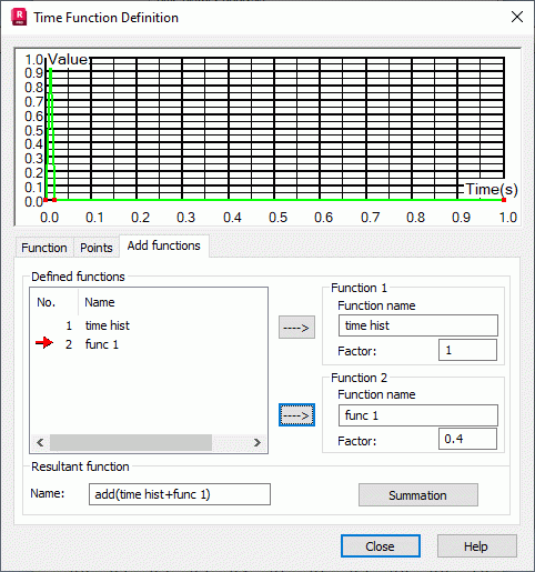 Note: The value of the resultant function is interpolated at the points with common abscissae. Each of the defined functions can be multiplied by a user-defined coefficient.