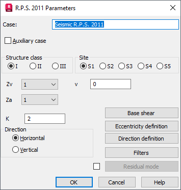 To complete the seismic analysis according to the rules given in this code, define the following parameters: