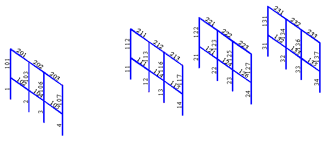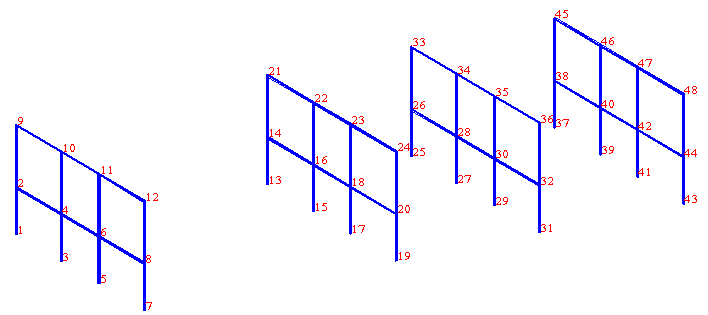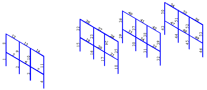 The following images show examples of using the Geometrical Renumbering dialog to change node and bar numbering.